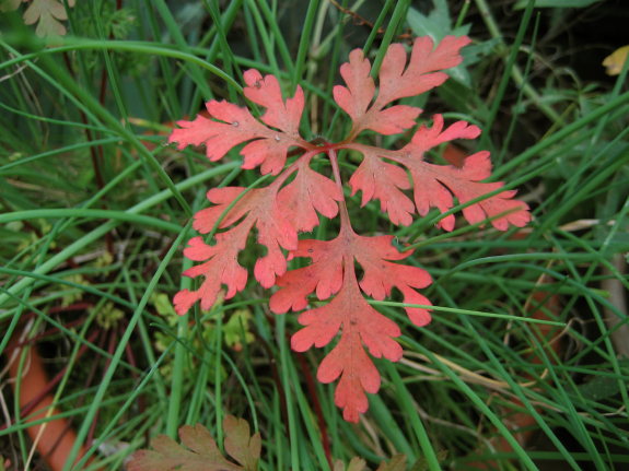 nicht ganz zum Titel passend, da sicher keine Fläche: in meinen Schnittlauchtopf hat sich ein Ruprechtskraut eingeschlichen.