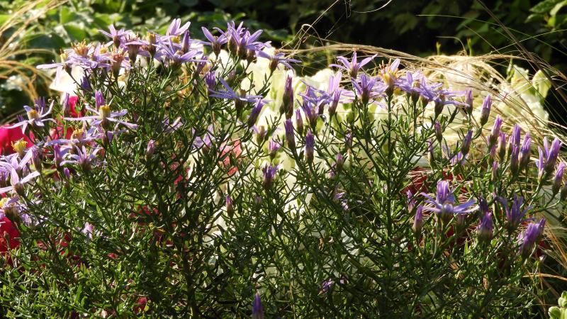 Hier blüht jetzt auch die Aster amellus 'Veilchenkönigin'.