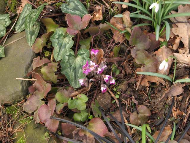 Du hast einen Eichenwald? Das Laub sieht so aus. Sehr schön für die Cyclamen hederifolium, Galanthus und Hepaticas!Ich hoffe, dass mein eines pinkes, das ich letztes Jahr geschenkt bekommen hab, durchkommt!Die gefüllten pinken sehen sehr gut aus. Vielleicht teile ich sie mal wieder. Einen großen Bestand, so an die 20 Stück oder mehr von den gefüllten pinken, habe ich gerade letzten Dienstag in einem Schneeglöckchengarten gesehen. Ist schon beeindruckend!