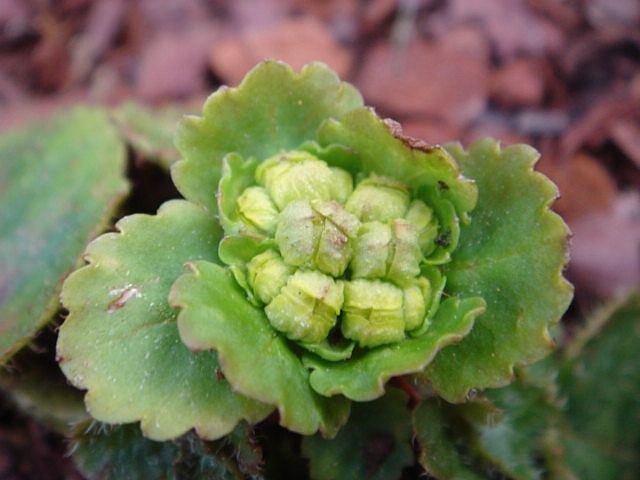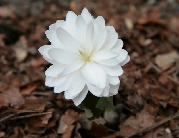 meine Jeffersonia ist auch noch weit entfernt zu blühen. Dafür ist heute Sanguinaria canadensis 'Multiplex' aufgeblüht.