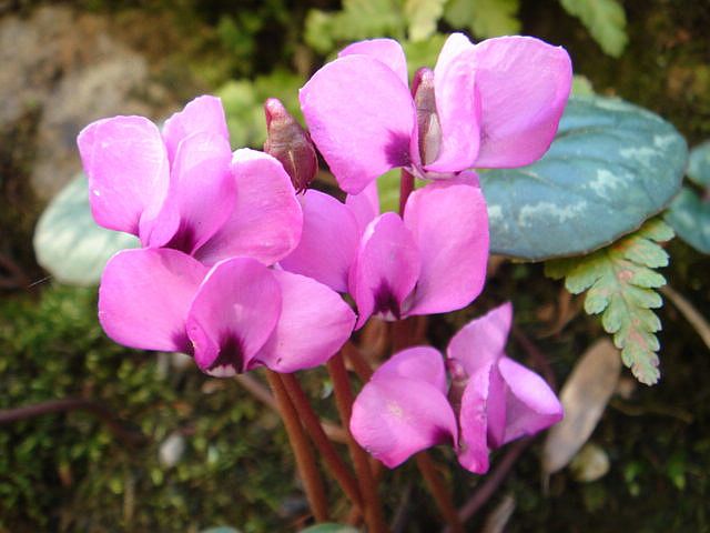 Vor einigen Jahren habe ich in eine Steinfuge (Nordseite -keine Sonne) eine Knolle von Cyclamen coum ssp. coum eingepflanzt ,die gehört dort eigentlich gar nicht hin ,blüht aber jedes Jahr schon ab Januar zuverlässig.