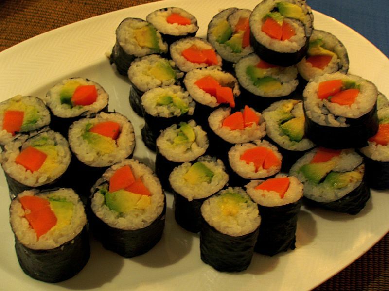 tatsächlich gab es soeben vegi-sushi mit gegarter karotte und avokado.
