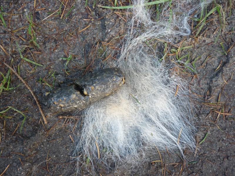 Das fand ich heute beim Hundespaziergang am Waldrand, es lag noch mehr von diesen Fellbüscheln dort.