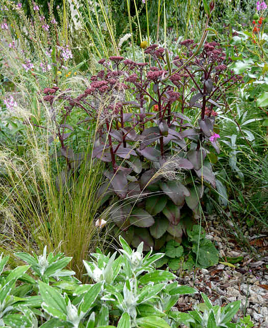Sedum 'Aubergine' habe ich noch nicht gepostet - sie macht noch keinen schönen Horst, da ich vor 2 Jahren dort zwei kleine Töpfchen gepflanzt habe (statt eines Horstes - das sieht man den Pflanzen immer noch an).