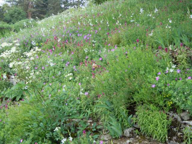 Ich glaube, das sind einfach Sämlinge von P. officinalis. Solche stehen auch auf einer der Pfingstrosenterrassen im Mengen herum, ich hab im Boga mal danach gefragt, weil sie mir mit ihren so besonders gut gefallen. Da hieß es, das seien officinalis, die schon sehr lange in Boga stehen und sich überall versamen.Südeuropäische Wälder. Überall die lilaroten Pfingstrosen. Die wachsen wie Unkraut, sähen sich aus. Welche könnten das sein? (im Hintergrund)