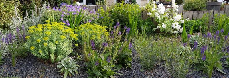 Cydora, Du schreibst recht stimmig. Könnte man noch etwas optimieren?Die Bartblumen stehen nicht mehr zusammen sondern eine links bei den Rosen W.C. und eine beim Miscanthus. Beides ist recht eng. Richtig schön sind sie nur im Herbst aber das grün/graue Laub sieht auch im Sommer nicht schlecht aus. Ich warte einmal ab und werde sie im Frühjahr ziemlich beherzt schneiden. Vor allen Dingen in der Breite.Den positiven Kommentaren schließe ich mich anIch finde es recht stimmig.