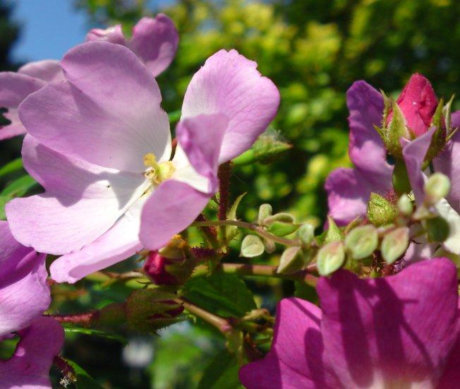 Bei den Züchtungen von Bruder Alfons sind einige meiner Rätselrose recht ähnlich. Gruß an Breinegg hat allerdings lt. Beschreibung kaum Stacheln und das Verhältnis Staubgefäße zu Blüte scheint anders zu sein. Hildeputchen könnte auch passen, da steht allerdings in hmf , dass sie von hell nach dunkelpink altert. Etwas irritierend, zumal das einzige Bild auch nicht danach aussieht.Aber wie groß ist die Chance, dass eine eher seltene Rose versehentlich ins Straßenbegleitgrün gerät?Oder sollte tatsächlich ein Vögelchen etwas Ähnliches "produziert" haben? Könnte natürlich sein, wenn es viele Multiflora-Sämlinge gibt, die einander ähneln.