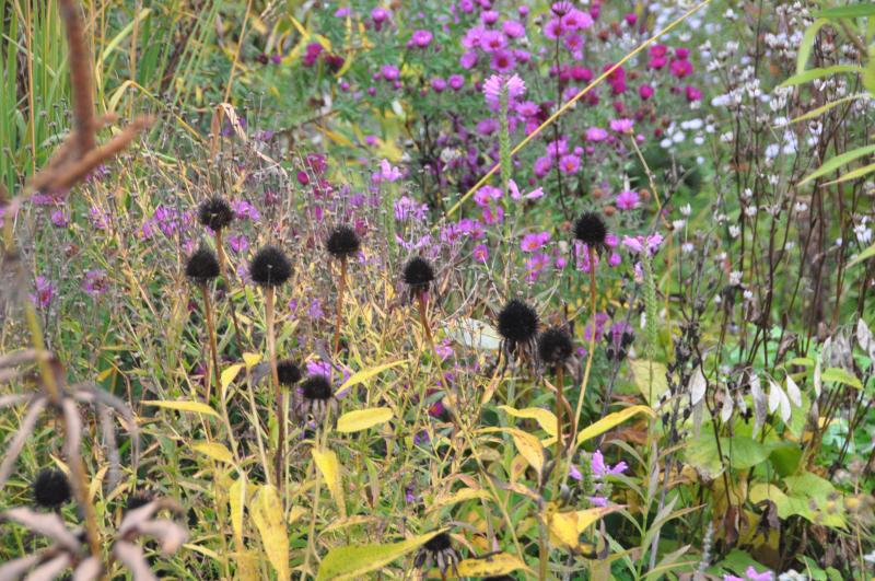 Markus, das dachte ich auch und war sehr skeptisch. Aber die Vernonia fühlt sich richtig wohl, breitet sich aus und wird auch um einiges höher als angegeben. Angegeben war 110cm und die Pflanzen sind 150cm bis 200cm. Wenn im Sommer die Sonne knallt, verbrennen zwar die Blüten und das Laub, das macht den Pflanzen aber insgesamt wenig aus.