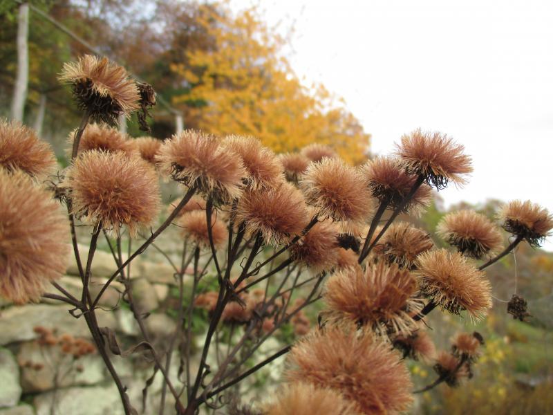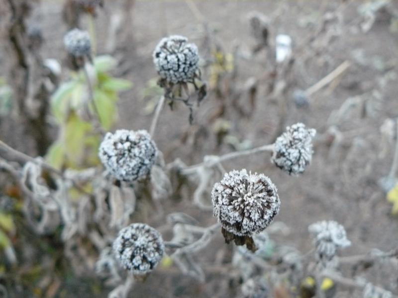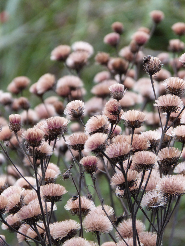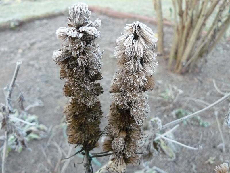 jetzt habe ich das ganze Thema durch, super schöne Bilder, aktuelle von Borker mit Raureif. Und jetzt die beiden von Vernonias, so adrette Flauschbällchen. Ich habe ein paar Vernonias über die Jahre probiert, sie sind etwas launisch gewesen ohne Bewässerung im Sommer. Dieses Jahr ist mir die Variationsbreite der Samenstände aufgefallen. Farbe und Größe sind unterschiedlich, ein Braun auf kräftigen Stängeln oder ein Beige auf zarteren. Ich muss mal nachschauen, was ich an Sorten und Arten habe.