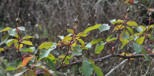 Mermaid, die noch etwa 20 farbzeigende Knospen hat. Echt der Blühwahnsinn, was diese Rose in einem halben Jahr zusammengeblüht hat!