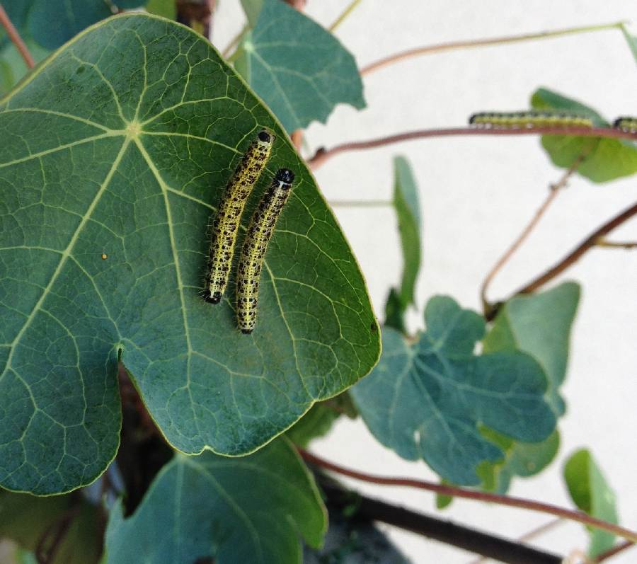 Als Futterpflanze ist auch diese Kapuzinerkresse ganz offensichtlich geeignet.ein Kohlweißling schien mir heute Mittag die Tauglichkeit von Tropaeolum tuberosum zur Eiablage zu testen.
