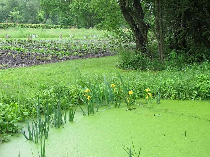 Bisschen eutroph, dein Gewässer.Die ideale Lösung ist natürlich ein Tümpel, in den das Regenwasser läuft und der Dank Grundwasseranschluss auch gleich Gießwasser spendet.