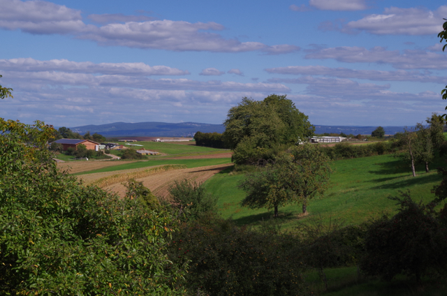 und hinter mir, ich stehe auf der ersten Anhöhe des Odenwaldes, sieht man weiter in ihn hinein