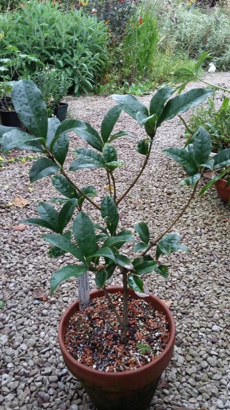 Mein Osmanthus ist übrigens auch von Rühemanns. Das gelbe Laub ist inzwischen abgefallen und der Neutrieb (Neutrino will die Spracherkennung schreiben) sieht gut aus: