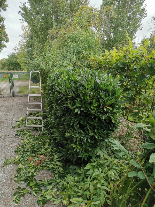 Kirschlorbeer kann einen starken Schnitt sehr gut vertragen...auch jetzt.
