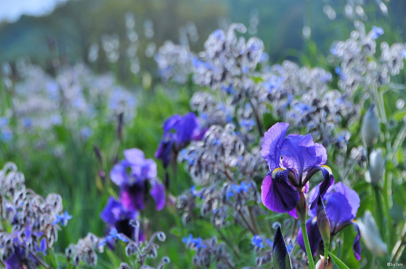 Thomas, deinen Garten mag ich sehr und deine Tamariske ist eine Wucht, aber die Lichtverhältnisse waren schon ein bisschen hart. Ich würde es nochmals morgens um 6.oo Uhr versuchen :)Franks Irisbild mit Borretsch wirkt auf mich wie ein Gemälde von Monet. Ich mag das Bild. Es sind zwar kühle Farben und der Grünton hat etwas zu viel Blauanteil, aber ich bin als Canon-Fotograf kühle Farben gewöhnt. Nun noch ein paar Wiesenblumenspielereien. Diese Wiese befindet sich gleich neben meinem Garten. Leider flattern auch jährlich tausende Pusteblumen-Schirmchen zu mir rüber und Löwenzahn ist somit "Unkraut" Nummer 1 ;)Gute Nacht und träumt was Schönes!Lg Evi