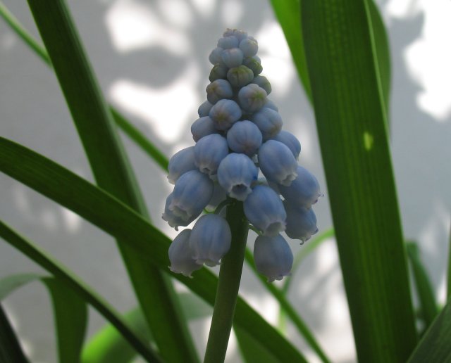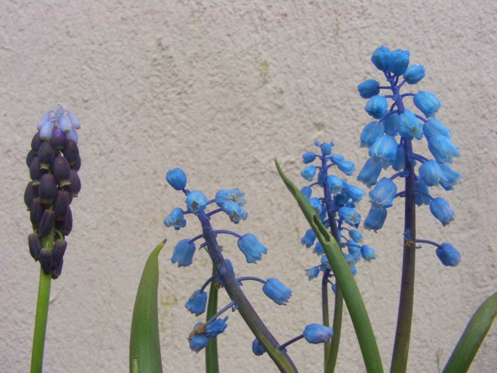 Muscari grandiflorum ist leider schon etwas verblüht, deswegen sieht man den hübsch kontrastierend-weißen Mund der dunkelblauen Blüten nicht mehr so gut.
