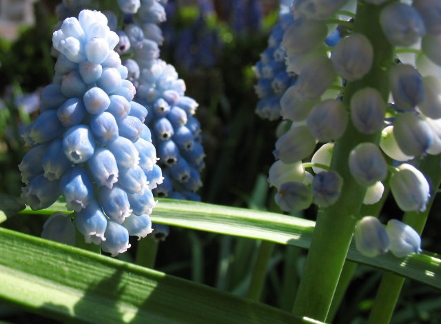 Bellevalia forniculata gehört tatsächlich zu den Arten, die ein einmalig schönes Blau liefern! Hier sieht man sie zusammen mit Muscari grandiflorum, um die farblichen Nuancen innerhalb dieser verwandten Gattungen etwas rüberzubringen.