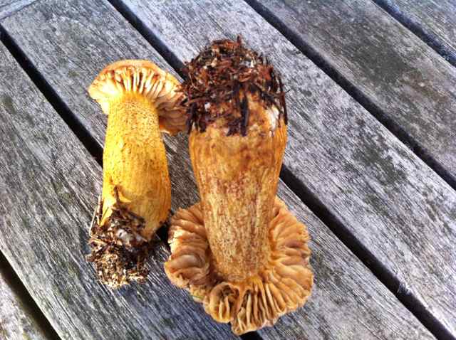 Mönchskopf, Ledergelber Riesentrichterling? " ... der Stiel eilt am Anfang in der Entwicklung voran."