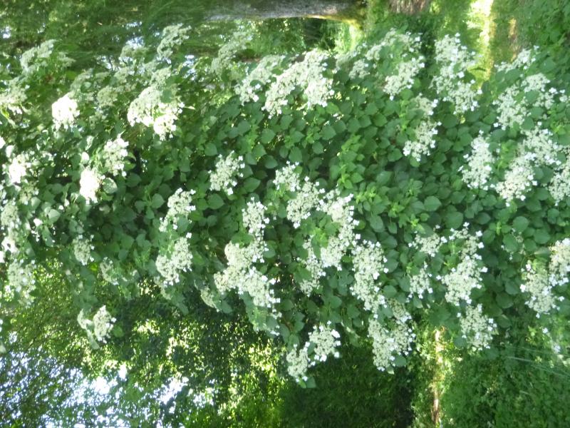 Eine unserer Kletterhortensien, die eine Eiche umrahmt. Hat jetzt mindestens 8 Meter geschafft!Hoffentlich sieht man das Foto im vertikalen Format oder ihr muesst den Hals verdrehen. Tut mir leid, scheine ein Problem damit zu haben.