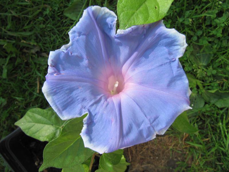 Klasse. Ich solllte mir doch wieder eine zulegen. 8)Dieses Jahr hatte ich mir über Ibäh Samen von japanischen Ipomoea nil bestellt - direkt aus Japan. Fürs erste habe ich eine Mischung genommen. Etliche der Sämlinge haben panaschiertes Laub, fast alle beginnen zu blühen. Die ersten Blüten waren fürchterlich zerknautscht, schrecklich! Heute morgen nun genehmigte ich mir vor dem Weg zur Arbeit noch einen ganz kurzen Rundgang. Es lohnte sich.