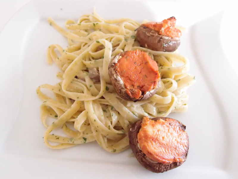 gefüllte champignons und tagliatelle mit bärlauchpetersiliensahne