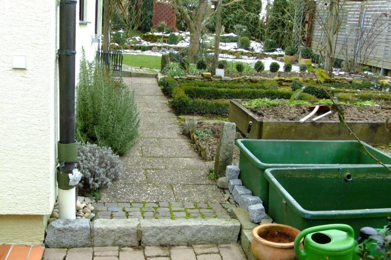 Ich denke noch immer darüber nach, wie ich meinen "Hauswasseranschluss" ansprechender gestalten kann. Die Pumpe muss im Winter abgebaut werden, daher muss ich da gut rankommen. Sie steht im Freien. Bisher habe ich einen billigen Fertigkomposter drübergestülpt, das sieht aber einfach bescheiden aus.