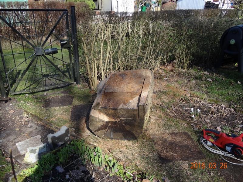 Wenn die Kettensägenkette wieder scharf ist, gehts los mit der Fertigstellung meines Einbaum-Wasserbehälters.