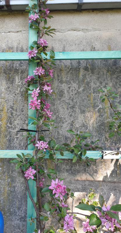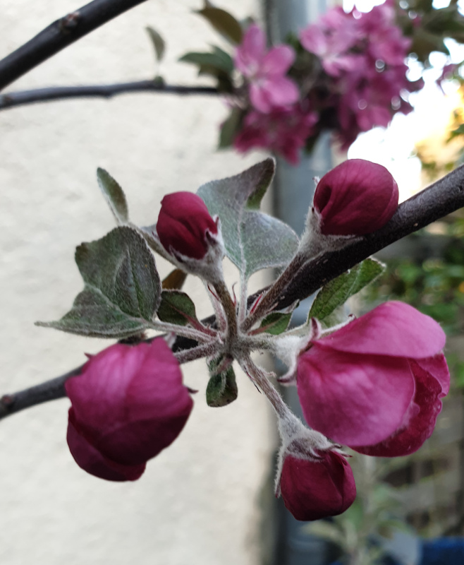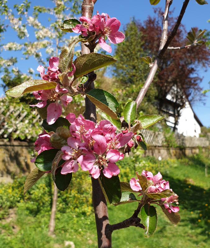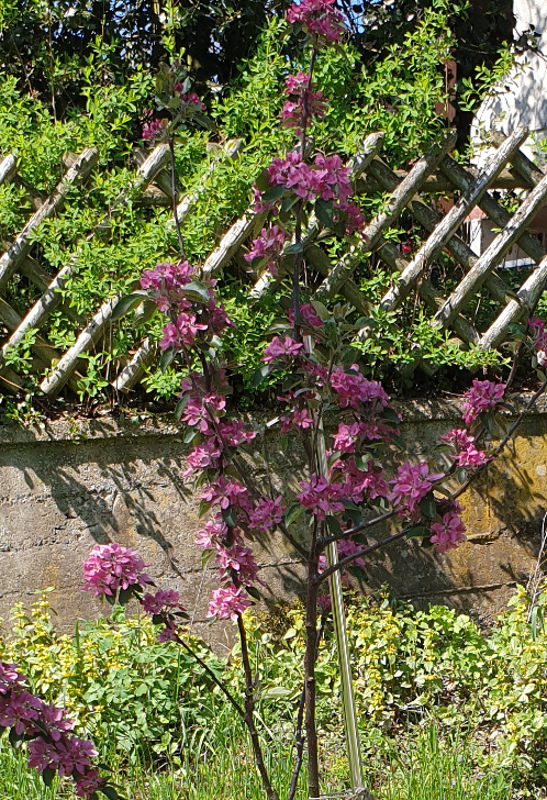 Hier ein "Lampenputzer XXL" Pomfital, über und über mit Blüten besetzt. Letztes Jahr hatte er auch geblüht aber nicht einen Apfel. Die Sorte alterniert hier bei mir sehr stark.