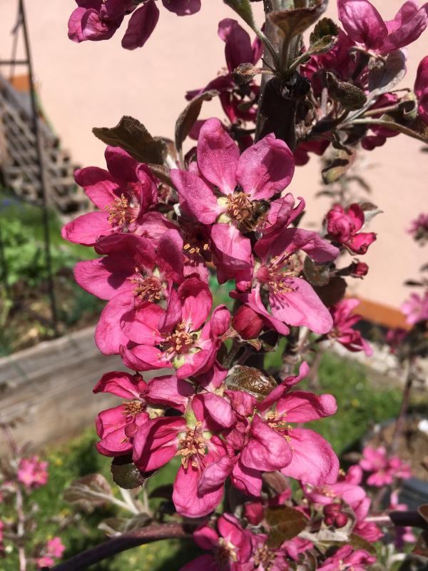 Ich habe auch einen rotfleischigen Apfel namens "Schneewittchenapfel Pekacervena". Blüte, die ersten Blätter und Fruchtfleisch ist rot und sogar das Holz soll auch rot sein.....
