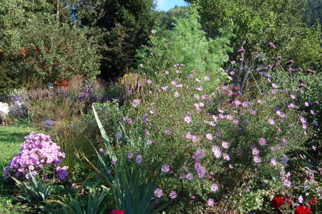 Eine hübsche Kombi ist Foeniculum vulgare 'Rubra' (Sumava :D) mit Senecio fuchsii 'Doria', Kalimeris 'Madiva', Pseudolysimachion, Molinia 'Transparent', Persicaria 'Fat White', einem schmutzrosa Sanguisorba-Sämling von Cimicifuga und Aster ghlenii.