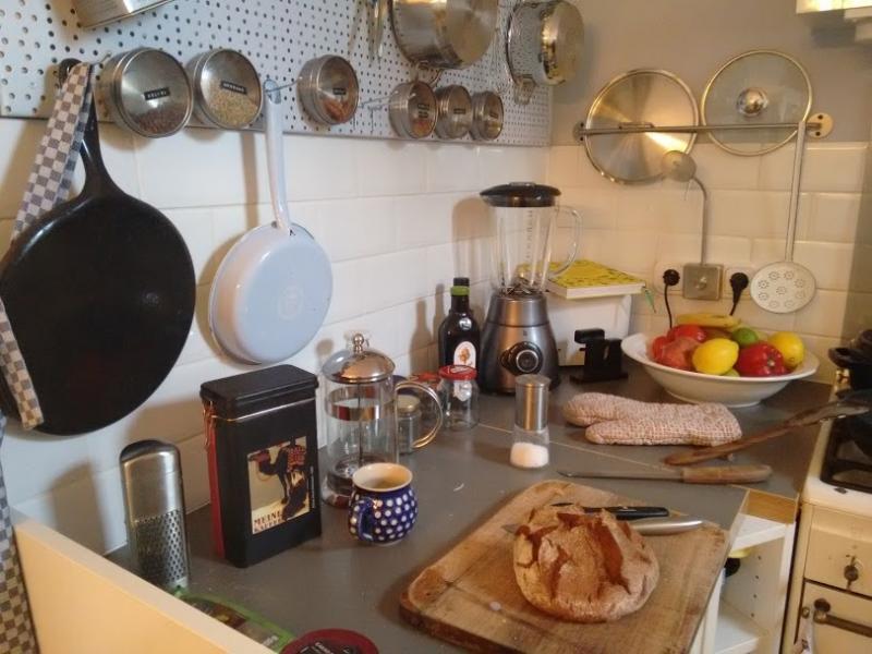 Ihr glaubt garnicht, wie mich diese Bilder erleichtern.Also, die Chaosbilder. 8)Ich glaube, Menschen, die richtig kochen, pendeln einfach immer zwischen Chaos und perfekter Ordnung, und manchmal ist die Amplitude so klein, dass außer einem selbst das niemand sieht.Hier ist gerade eher Dauerchaos, da ich außer Betrieb bin, noch für 4 Wochen.Dabei liebe ich eigentlich saubere Küchen mit freien Flächen.Aber bei 1,50 + 0,45 +0,6 m Stellfläche ist das für eine passionierte Köchin echt schwer.