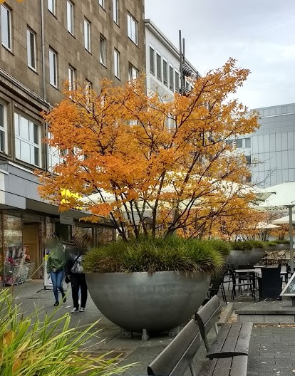 Die XXL-Kübel bei uns in der Innenstadt hatte ich schon mal irgendwo erwähnt, gerade fallen sie inmitten des trüben Wetters besonders auf.