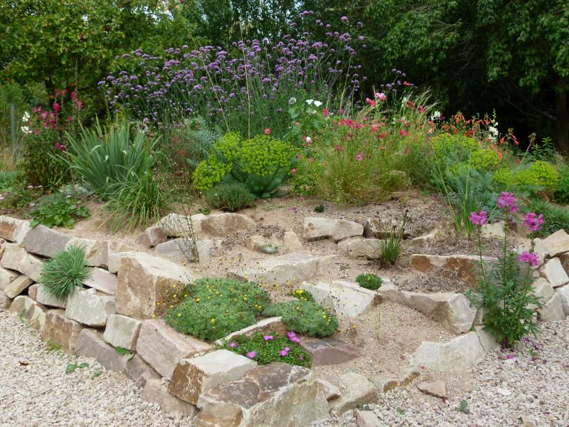 ja die Steine habe ich einfach aufgestapelt. Sie gewinnen Stabilität, indem sie sich ein wenig zurücklehnen an die Erde im Beet.