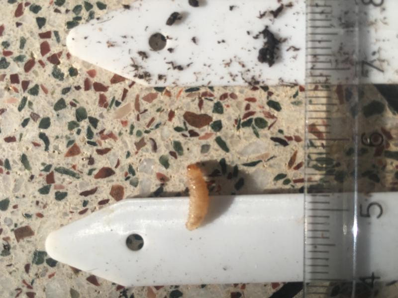 Gut zu erkennen die Sichelform der Dickmaulrüssler Larven.