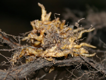 letztes jahr fand ich in kroatien, in der gegend von gracac schon vertrocknete orobanche mit samenstand, die auffällig im umkreis von satureja species erschienen. da ich satureja montana im garten habe, probierte ich die aussaat bei 3 oder 4 satureja-stöcken aus. oberflächlich wurzeln freigelegt, orobanche samen ausgestreut, abgedeckt mit splitt. gestern riß ich einen alten satureja-stock aus, weil er mir einfach zu mächtig geworden war im steingarten. in den wurzeln fand ich 2 solcher wucherungen. ich vermute stark, dass die unbekannte kroatische orobanche sich hier festgesetzt hat. den satureja-rißling mit der vermutlichen orobanche infektion habe ich jetzt mal zurückgeschnitten + getopft. hoffentlich wächst die satureja weiter, dann könnte es klappen mit einem austrieb der orobanche nächste jahr. außerdem hoffe ich, dass die im garten noch verbliebenen satureja auch erfolgreich infiziert wurden. ich berichte nächstes jahr, wenn's geklappt hat.