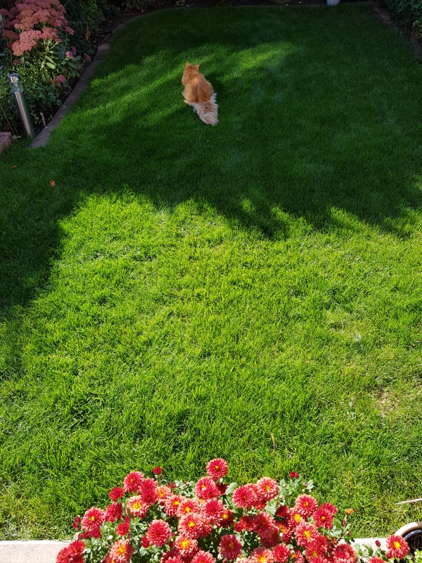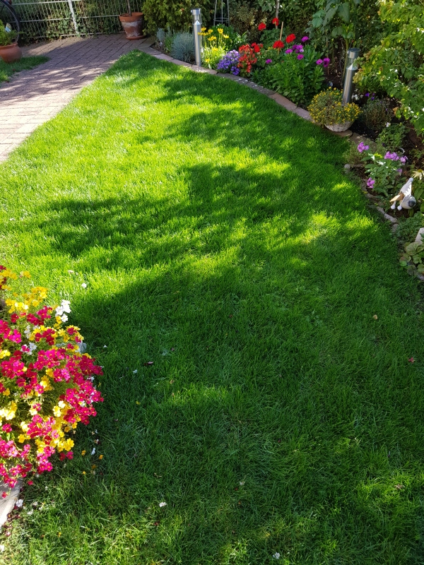 Der Rasen sieht klasse aus, dazu noch nach diesem Sommer.