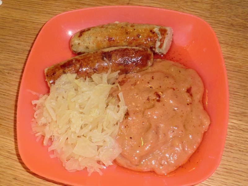 Obwohl ich sonst nicht gerne mehrmals das gleiche esse, hatte ich dreimal hintereinander Sauerkraut mit Bauchfleisch und Kartoffelpüree und hätte es auch noch ein viertes Mal essen können. :)
