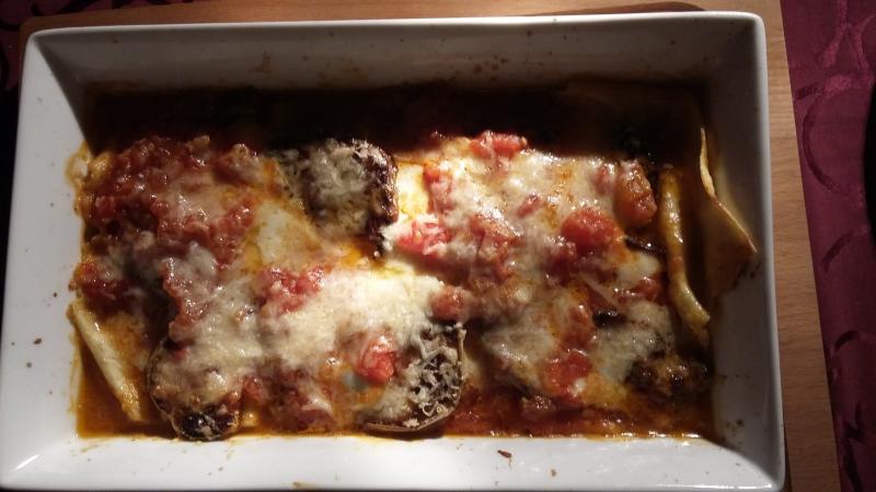 Es gab diese Woche Auberginenlasagne mit selbstgeernteten Auberginen - oberlecker. :D