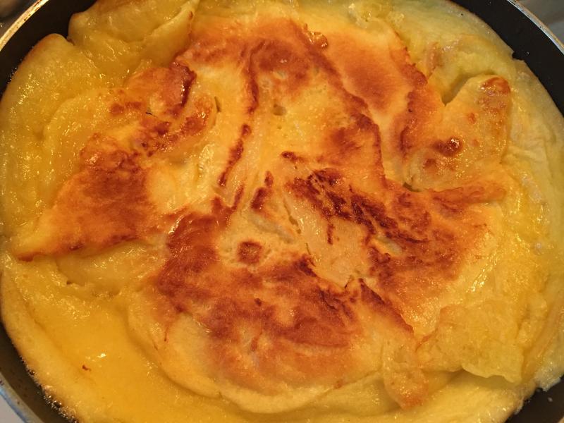 Heute ein Puffer aus Kloßteig (Kühltheke) mit Champignons (Knoblauch, Salzzitrone, Gorgonzola), dazu Rucola-Salat.