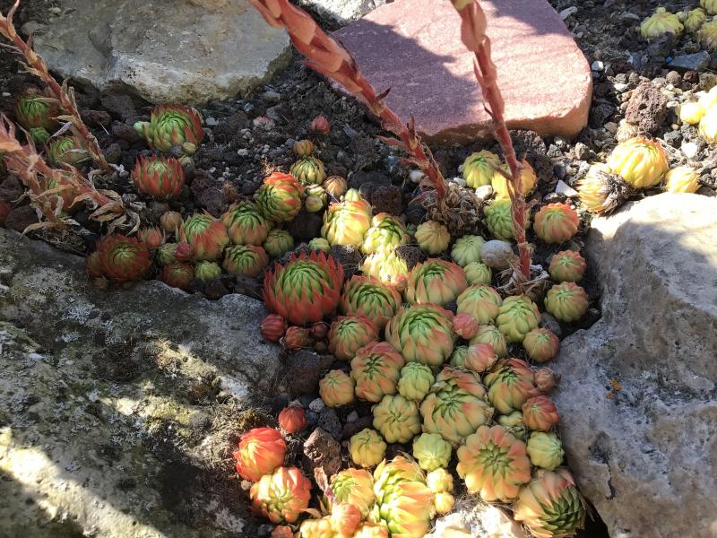 Ich habe auch die Erfahrung, dass bei Weitem nicht alle Sempervivum volle Sonne und Trockenheit aushalten. Gut haben sich bislang die Typen von S. arachnoideum geschlagen. Besonders eine Form mit sehr kleinen Rosetten (1 cm ). Die hat bislang alles ausgehalten. Jovibara ist da genauso gut. Die Rosetten verfärben sich und werden fast kugelig halten aber die größte Trockenheit aus. Bei den Steinbrechen habe ich auch schon Verluste hinnehmen müssen. An sonnigen trockenen Stellen pflanze ich höchstens noch die grau- silbernen Typen.