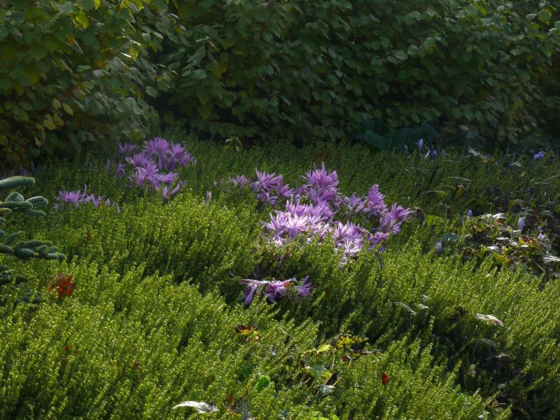 Aus Erica carnea steigen Colchicum-Blüten auf - unbedingt nachahmenswert.