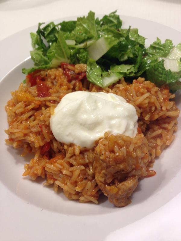 Hier gabs serbisches Reisfleisch mit Chinakohlsalat aus dem Hochbeet