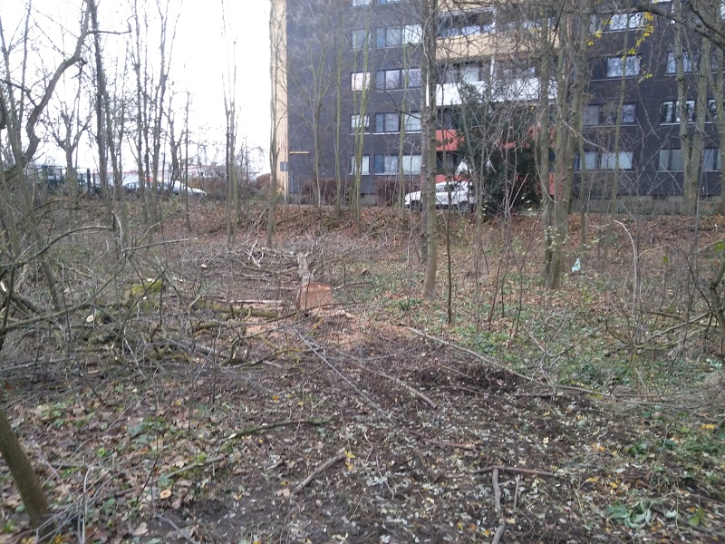 Hier eine `aufgeräumte´ Stadtnaturfläche nach Rußrindenkrankheit auf Ahorn. Der liegende Baum wurde erst nach Abstimmung komplett umgelegt, weil im Umkreis recht viel senkrechtes Totholz steht. War unter den anwesenden Akteuren sowohl wirtschaftlich als auch naturschutzfachlich vertretbar, einen einzelnen Baum komplett zu fällen, obwohl keine Entsorgungspflicht für gesundheitsgefährdende Biomaterialen vorliegt. Man hat sich eben auf einen Kompromiss geeignet.