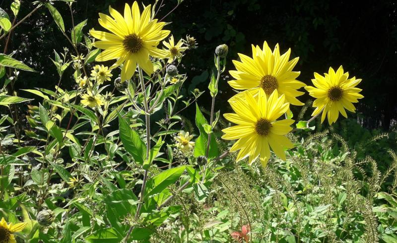 Helianthus orgyalis heute Morgen bei Sonnenaufgang.