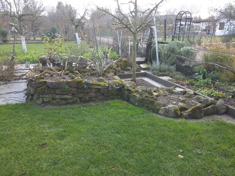Hier im Flachland siehts aktuell trostlos aus. Ich muss ein paar dutzend Töpfe Hauswurzen verteilen im Frühjahr oder mir doch noch was anderes überlegen. Zuallererst hätte ich aber gerne die Kratzbeere aus dem Steingarten los... auch deswegen sieht es so kahl aus...