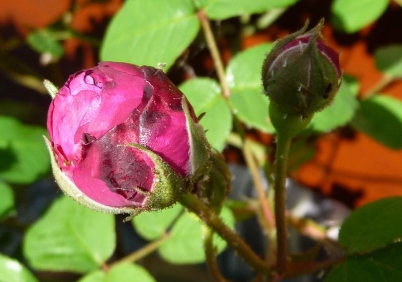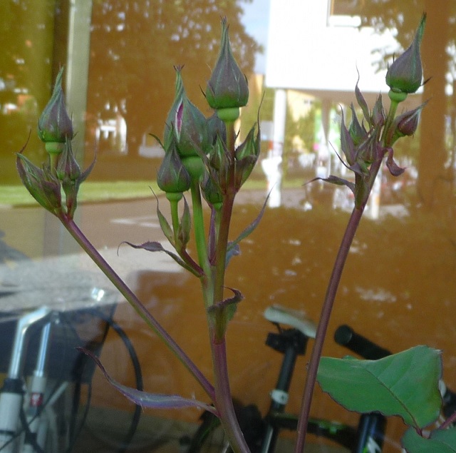 Laika hat viele Knospen und ist voller Vogelsch.... Typisch für sie sind die gezwirbelten oberen Enden der Kelchblätter im Knospenstadium.