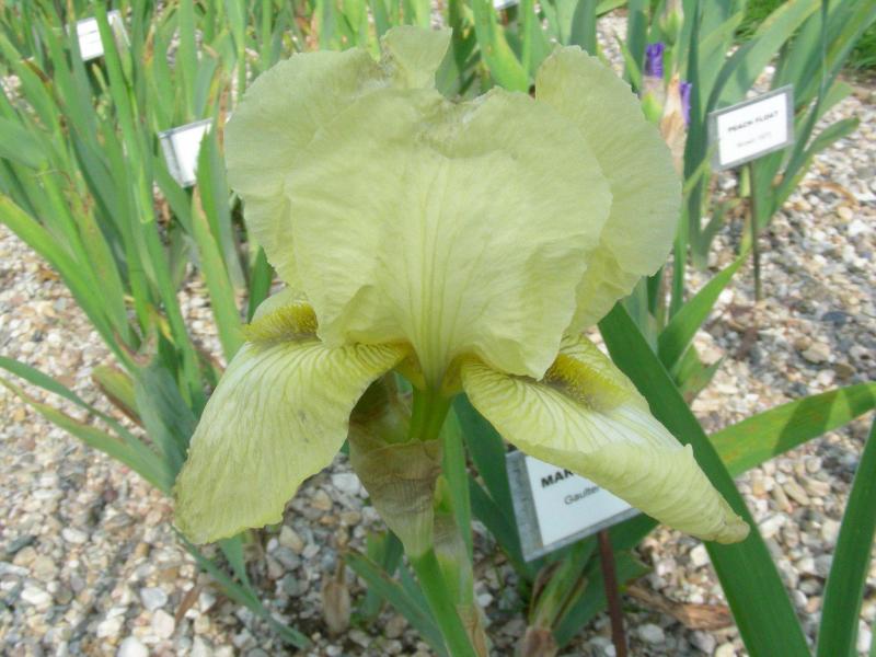 schöne hellgelbe mit leichter Aderung und Schild auf dem Steht Gaulter und Mar... unter dem Züchter und dem Namensanfang habe ich keine gelbe Iris gefunden, also ganz falsche etikettiert? Wer kennt diese Sorte?