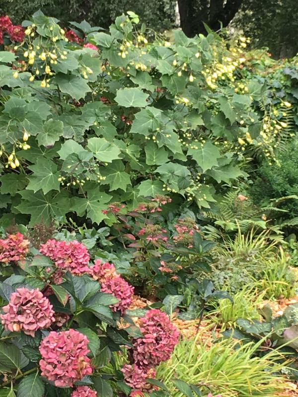 Wo die Wachsglockenblume/ Kirengeshoma palmata sitzt ginge Hortensie auch gut, aber alles geht nun mal nicht.