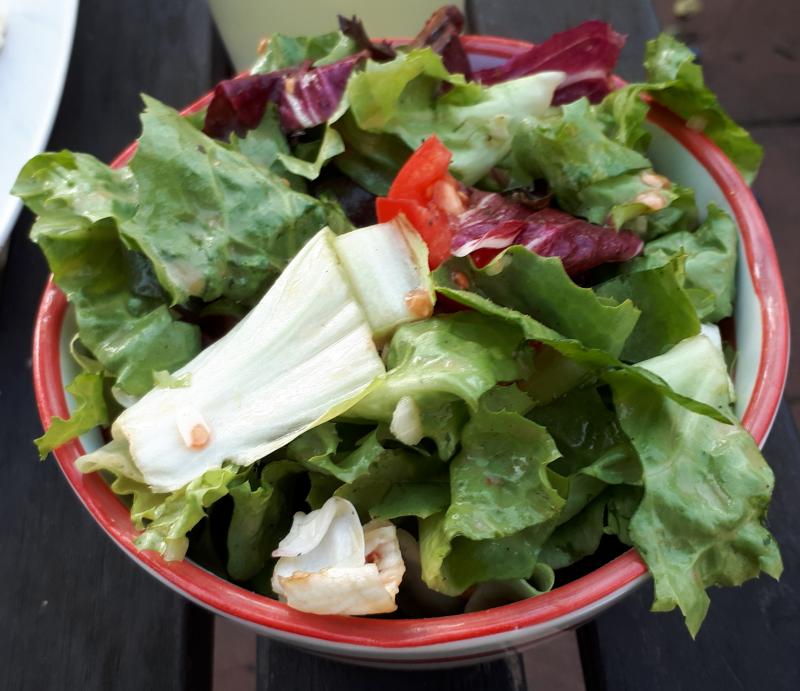 Hier gab es Rigatoni mit Sugo aus frischen Tomaten, Butter und Basilikum und Parmesan, dazu Blattsalat.
